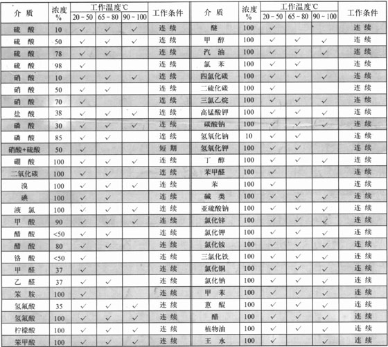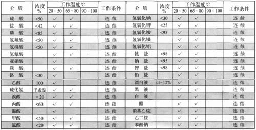 一、聚全氟乙丙烯(F46)耐化学性能摘录表